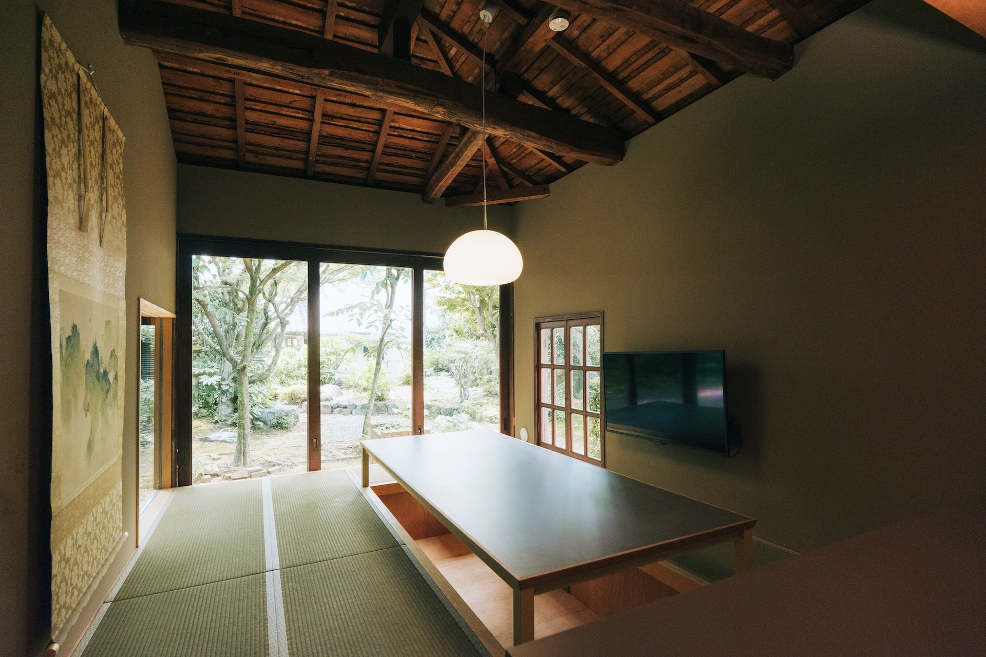 四季折々に変化する中庭の木々がくらしを彩り、大開口の窓を開け放てば季節の香りをまとった風が家中に広がる心地よいすまい。長い歳月に育まれた古民家の風情を残しつつ、使い勝手のいいキッチンやプライベートサウナなど快適にお過ごしいただける設備も揃っています。二階には三つの部屋をそれぞれ寝室としてご用意しており、グループや複数の家族でのご滞在にもおすすめ。一階では和食カフェが営業し、渡月橋や竹林の小径をはじめとした観光スポット、嵐山駅にも徒歩圏内と周辺環境も良好。観光では味わえない地域の歴史や文化、そして生活の香りを肌で感じながら、のんびりとしたひとときをお楽しみください。